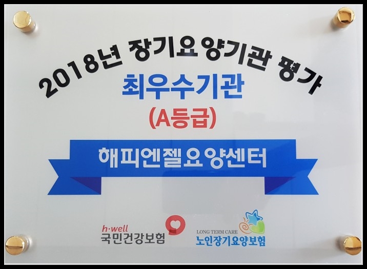 국민건강 보험공단에서 실시한 2018년 장기요양기관 평가에서 최우수 기관으로 선정 되었습니다.