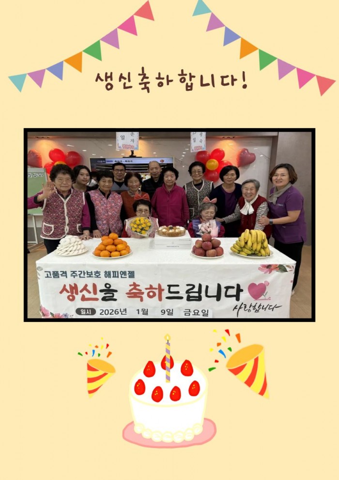 해피엔젤 주간보호센터에서는 1월 생신을 맞이하신 어르신들을 모시고