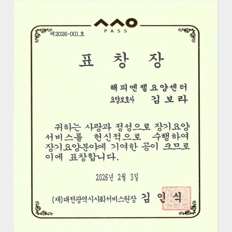 대전광역시 사회서비스원 표창장을 수여받으셨습니다