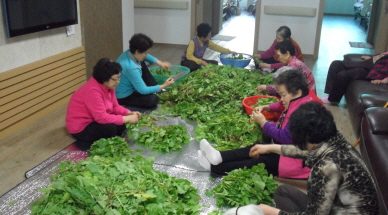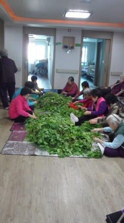 어르신들과 함께 나물(열무)다듬기를 해 보았습니다. 다같이 모여 앉아 서로의 얘기를 나누기도 하고, 열무김치를 맛있게 담그는 방법도 서로 나누어 보는- 정겨운 시간이 되었습니다.